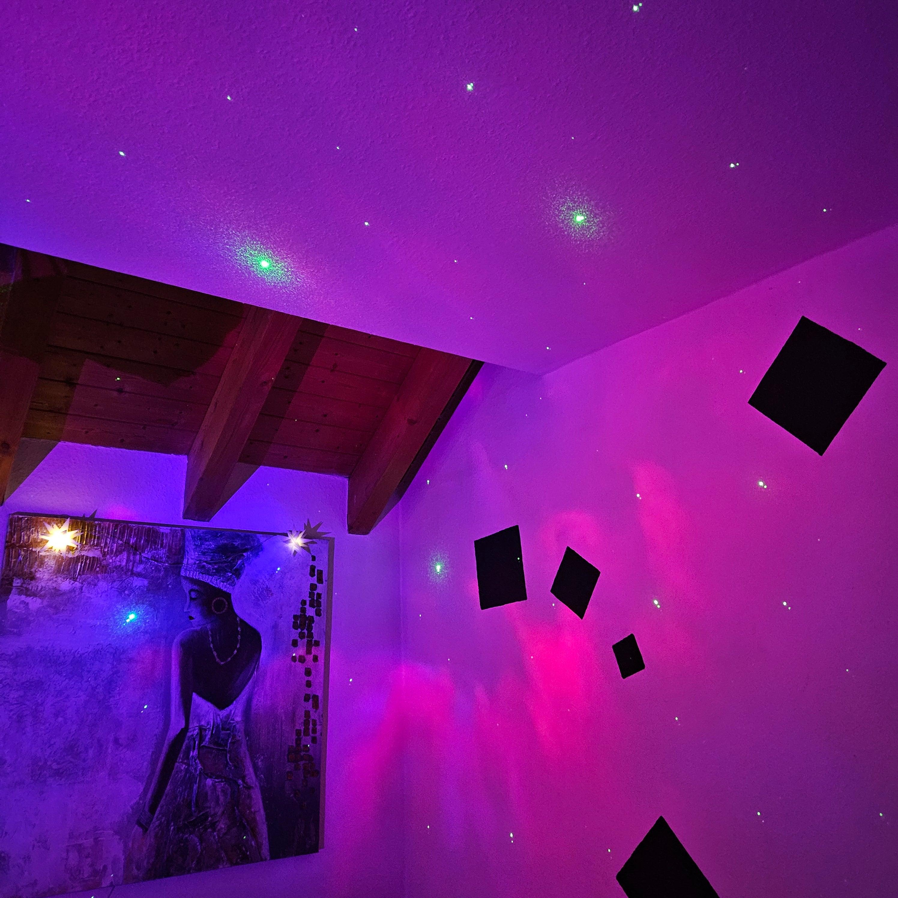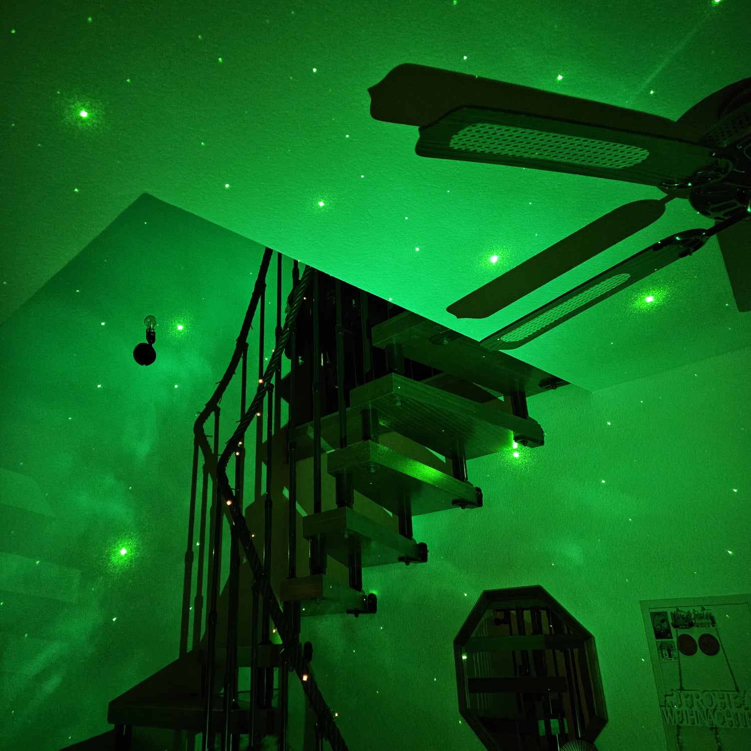 Aktivieren Sie den Laser und projizieren Sie Sterne an Wände und Decke.