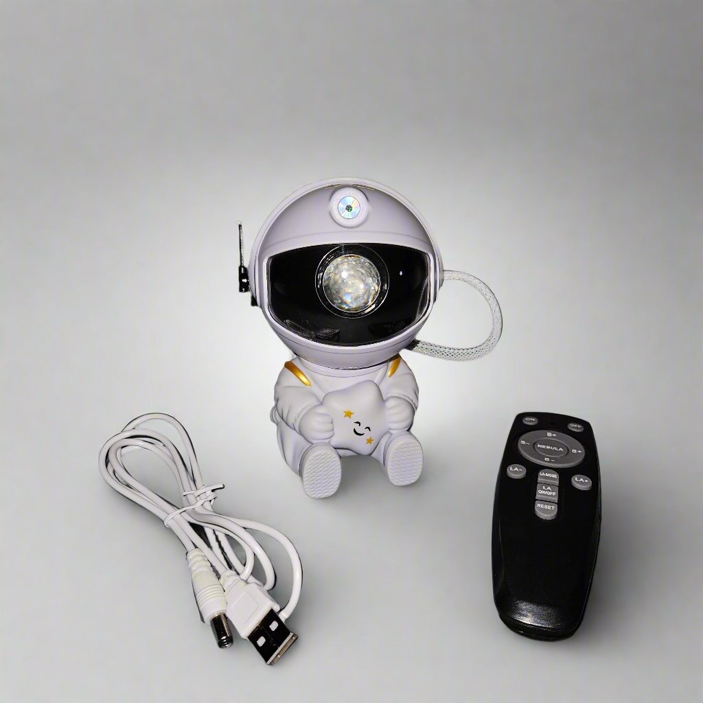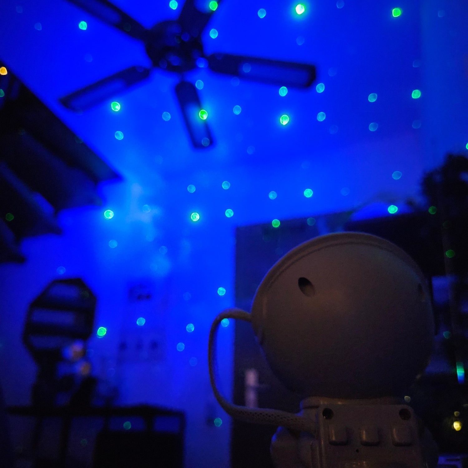 Passen Sie Farben, Helligkeit und Rotationsgeschwindigkeit mit der Fernbedienung an. Der bewegliche Astronautenkopf ermöglicht es, die Projektion in jede gewünschte Richtung zu lenken.
