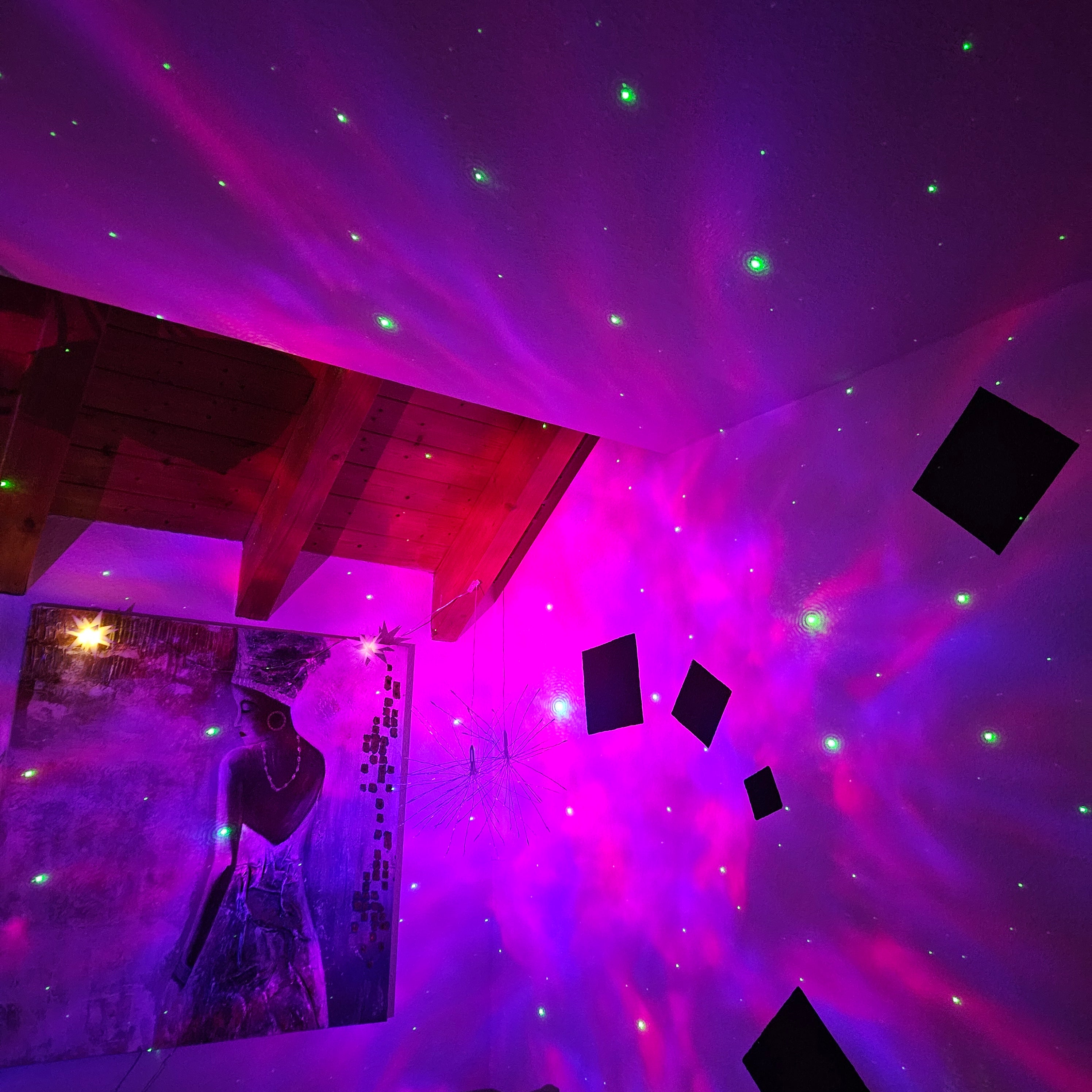 Schalten Sie den Laser ein und lassen Sie Sterne in Ihrem Raum erstrahlen.