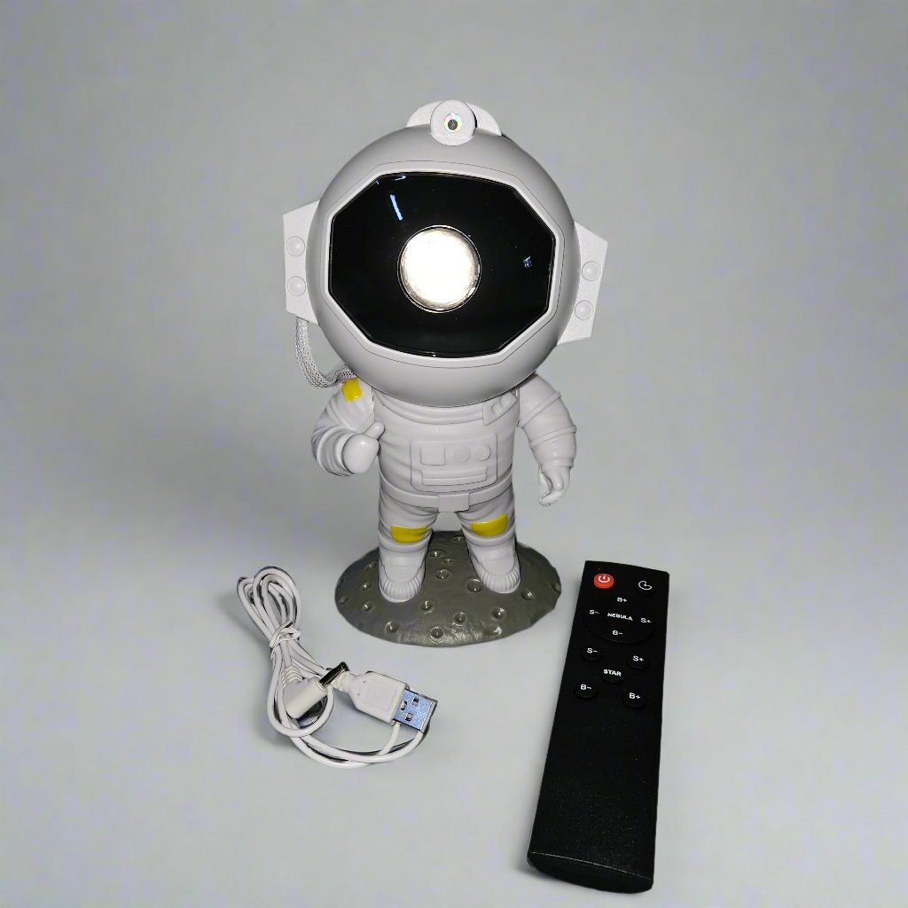 Passen Sie die Farben, Helligkeit und Rotationsgeschwindigkeit ganz nach Ihren Wünschen an – alles über die Fernbedienung. Der Kopf des Astronauten ist beweglich, sodass Sie die Projektion präzise in jede gewünschte Richtung lenken können. Alles in Ihrer Hand, um die perfekte Atmosphäre zu schaffen.